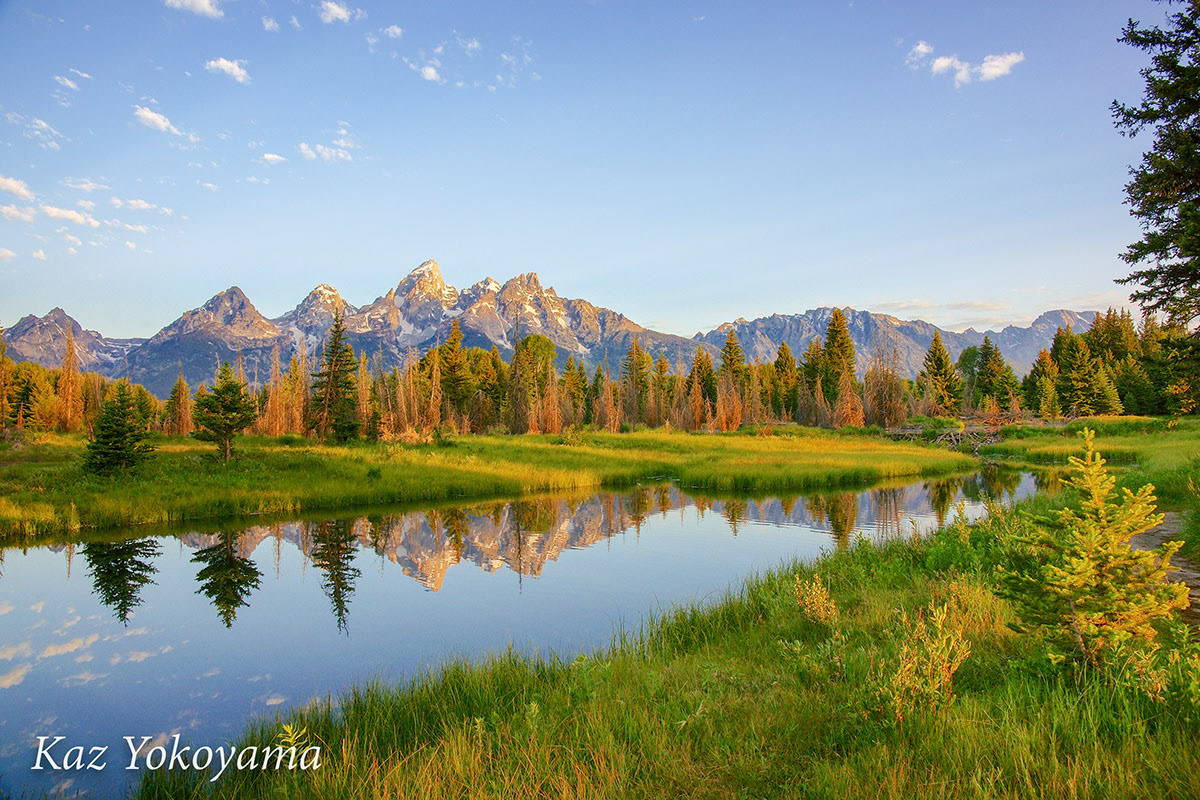 Grand Teton National Park is a US National Park in northwestern Wyoming and next to Yellowstone National Park. Grand Teton which is reflected in its lakes and rivers is wonderful and photogenic.